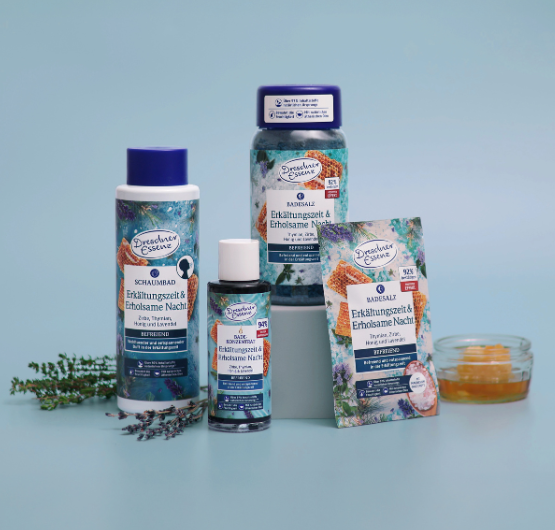 Dresdner Essenz Natürlich Gesund Fühlen Badezusätze unterstützen dich in während der Erkältungszeit. Unsere Badezusätze der Linie „Erkältungszeit & Erholsame Nacht“ sind zum Beispiel speziell dafür entwickelt, eine erholsame Schlafatmosphäre zu schaffen. Natürliche ätherische Öle aus Thymian, Zirbe und Lavendel bilden ein harmonisches Zusammenspiel. Das warme Wasser und der Wasserdampf mit dem Duft der ätherischen Öle, der in die Nase steigt, sind wohltuend für die Atemwege. Sie werden angenehm befeuchtet. Durch die Wärme des Wassers entspannt sich außerdem deine Muskulatur. Körperliches Unwohlsein führt häufig auch zu Muskelverspannungen. Ein warmes Bad mit ätherischem Lavendelöl hat außerdem eine beruhigende Wirkung auf Körper und Geist, was generell förderlich ist, um anschließend besser einzuschlafen.